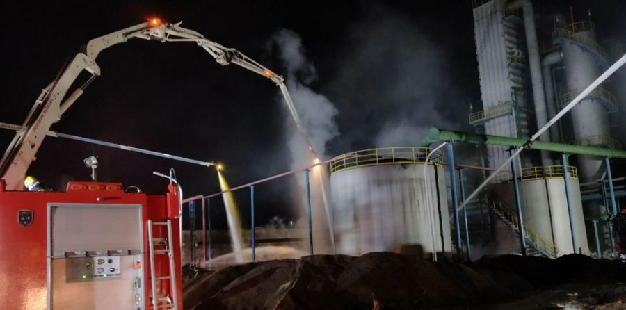 2018年11月9日,昌吉州某化工厂意外发生大火,大火长时间持续燃烧,化工厂储油池中有上百吨原油,周边还有其他储油池,若被点燃将会十分危险。