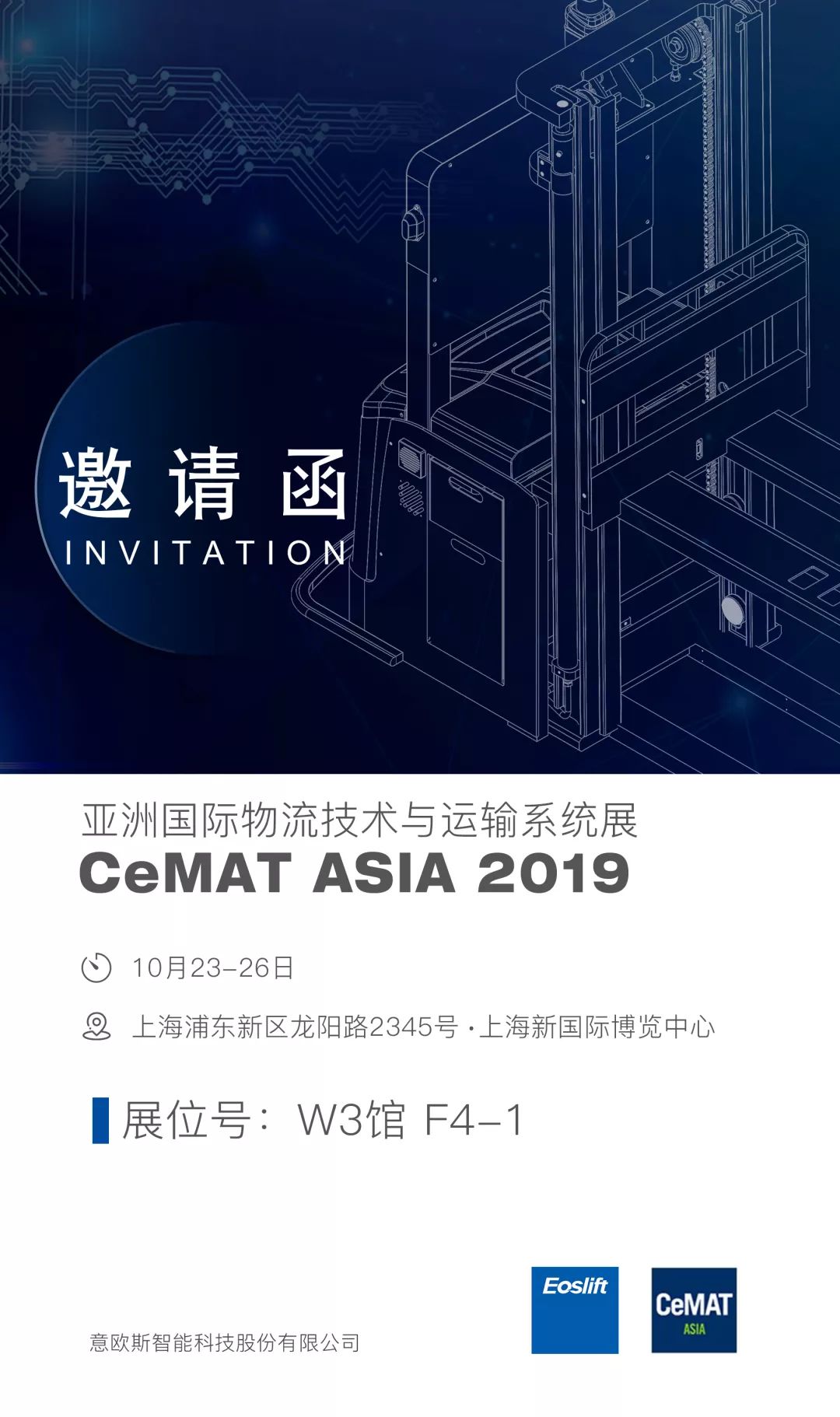 转载 2019-09-26 13:32 意欧斯智能科技 来源:意欧斯智能科技举世瞩目的亚洲物料搬运和物流技术行业国际性盛会CeMAT ASIA 2019,将于10月23日-26日在上海新国际博览中心隆重举行。