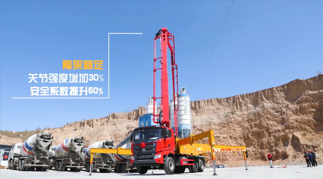 三一自主研发的专用底盘泵车,底盘、上装一体化设计,泵送工况自适应,完美匹配,可靠性提升15%、不挑“料”,打得快。