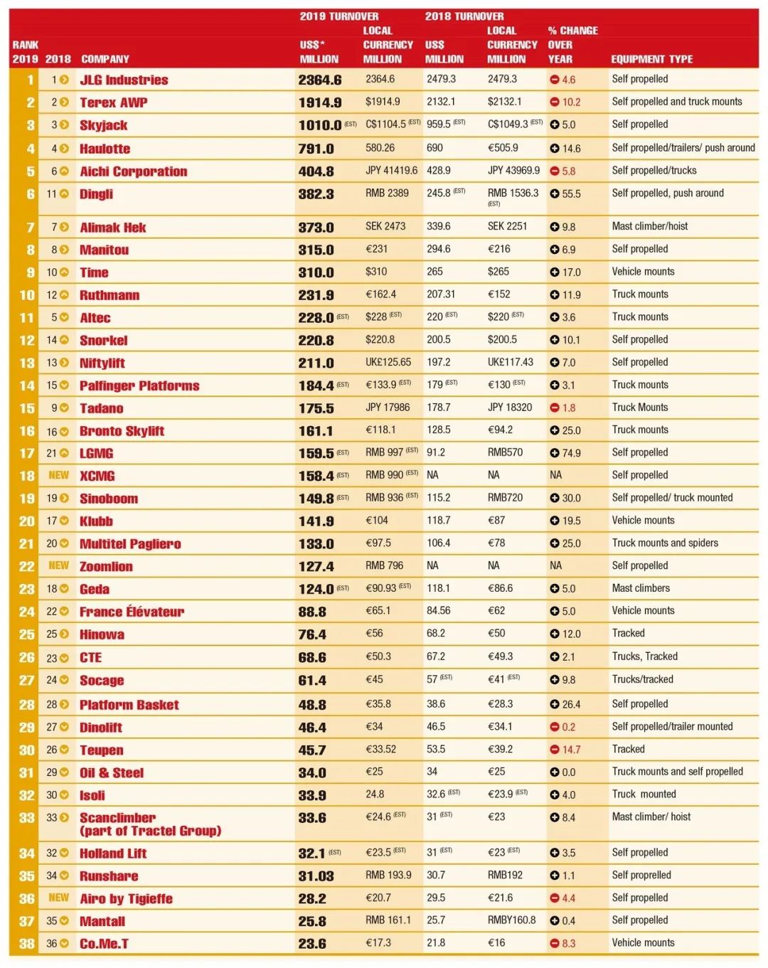 全球第6,鼎力携手中国高空作业平台制造商集体登榜M20!