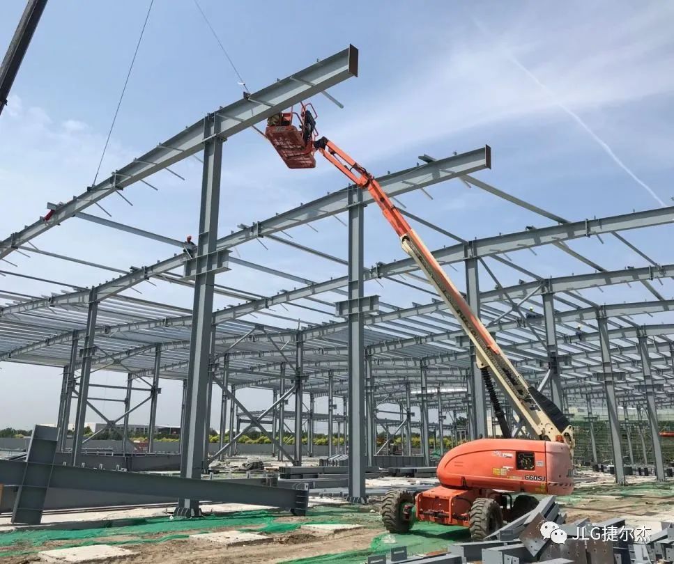 捷尔杰高空作业平台智能工厂钢结构安装是高空作业平台在中国建筑施工行业广泛应用的一个缩影。