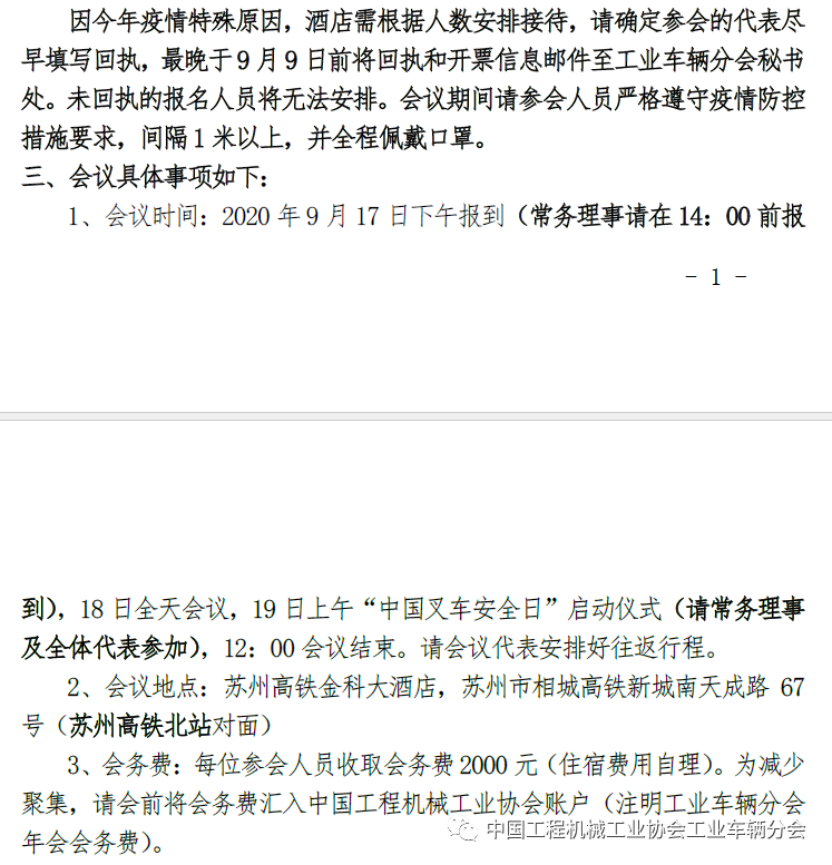 工业车辆分会2020年年会通知