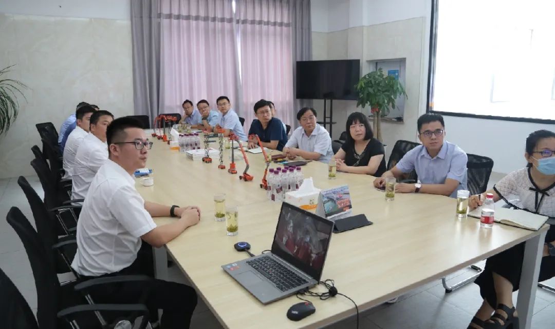 许继集团董事长张旭升与浙江鼎力董事长许树根各自携核心团队成员在许继总部洽谈。