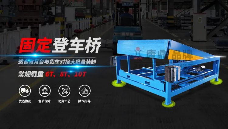 固定式登车桥是一款类似于固定式液压升降平台的设备,用于固定地点长期大批量装卸货物的场合使用,配合叉车或手推车从货车车厢内部进行货物的装卸。