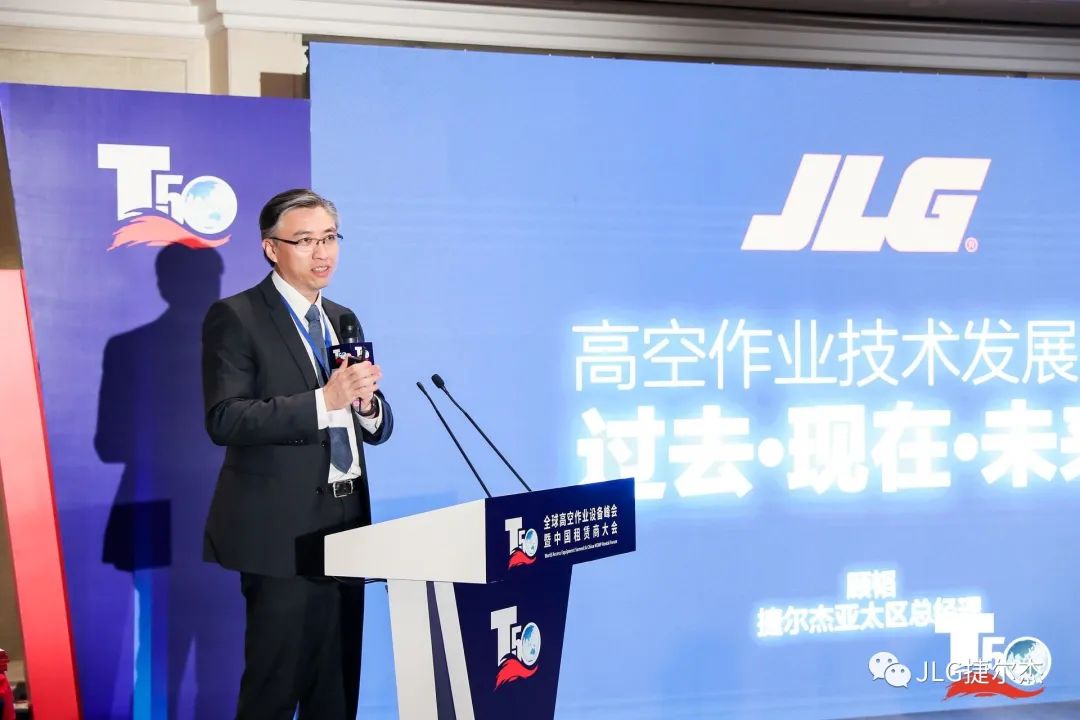 捷尔杰(JLG)亚太区总经理顾韬出席峰会,并向与会嘉宾分享捷尔杰两大未来技术发展方向——电气化与大数据。