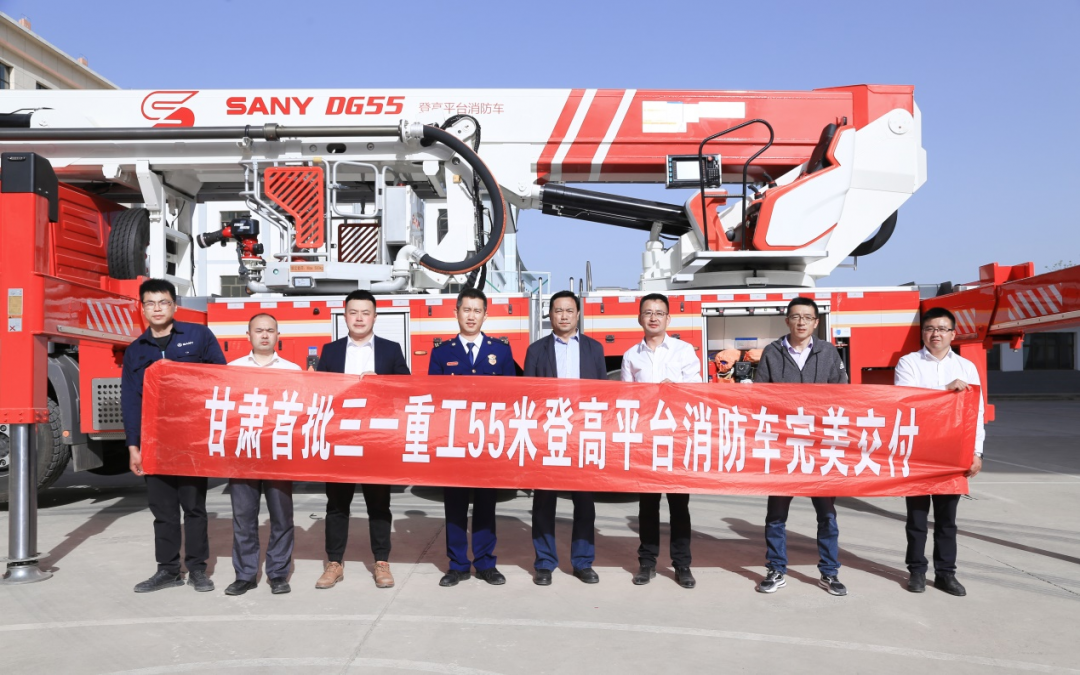 高空救援,可达19层!甘肃首批三一55米登高平台消防车完美交付
