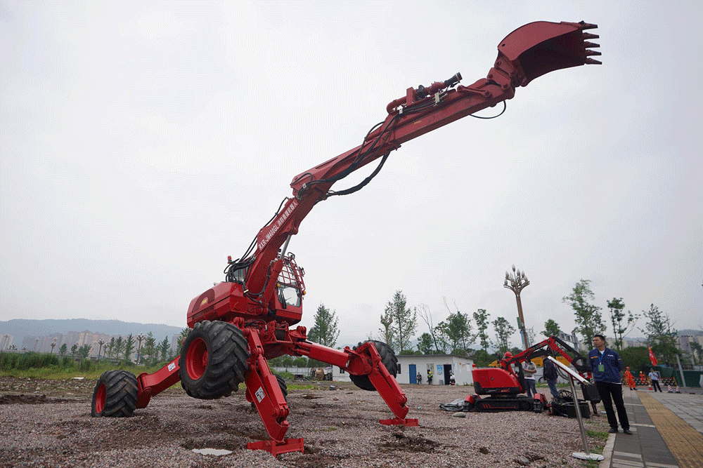 2017年12月12日,习近平总书记视察徐工时命名的“钢铁螳螂”步履式消防救援机器人能实现全地形行驶和作业,可在林地、山地丘陵、沼泽地等各种复杂地形条件下实施灭火、挖掘、吊装、回填、堆砌、砍伐等作业。