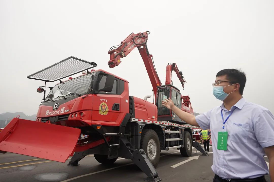 本次参与演练的JY20多功能抢险救援车集挖掘、破碎、剪切、抓取、起吊、拖拽、切割、平地破障等多种功能于一身,适应于地震、塌方、泥石流等多种自然灾害发生后的应急救援作业。