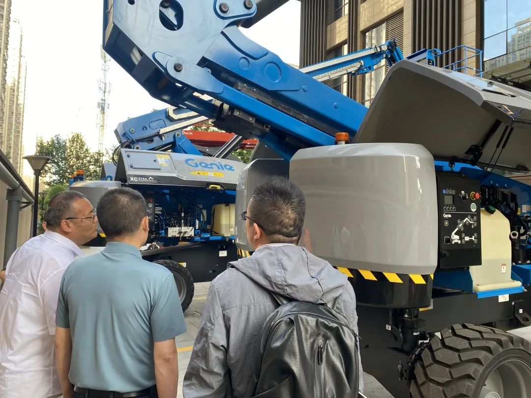 吉尼携两款新品 Genie® S®-80 J和 Genie® S™-65 XC™ 全新亮相安全论坛会议。会议现场,吉尼销售和售后团队对这两款热销机型进行了详细的介绍,展示了吉尼设备的安全高效和高性价比特点。在现场的试驾环节,西安地区众多租赁公司也踊跃参与,亲身体验了吉尼高空车超高的稳定性和便捷的操作。