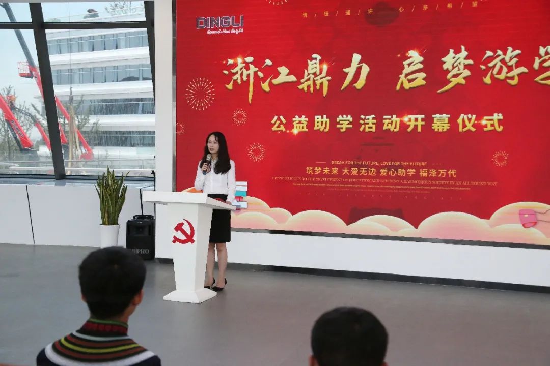 【浙江鼎力 · 启梦游学】公益助学活动开幕仪式上,公司党委书记梁金、浙江大学研究生支教团易际泉老师分别发言,孩子代表还诵读了感谢信。自成立以来,浙江鼎力专攻主业之余,一直积极践行社会责任,成立党员专项“红鼎”基金,结对帮扶、爱心助农、抗疫救灾……此次公益助学活动启幕后,公司也将继续坚定公益道路,践行好社会责任。