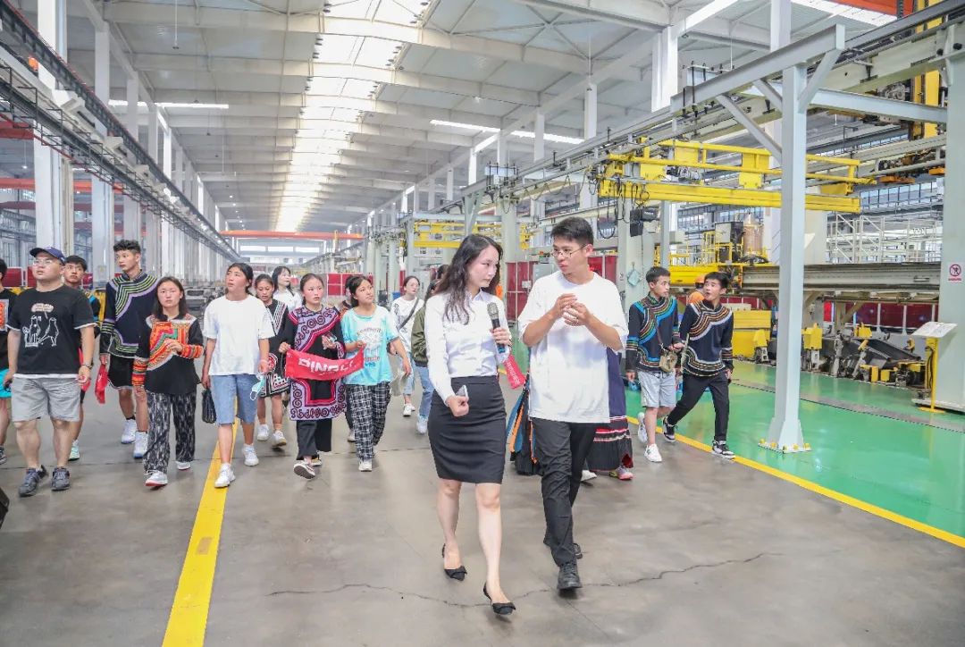 “这儿都是机器人在工作呐!”“这么厚的钢板切割的这么快!”“这些设备原来是这么造出来的!”“工厂也太太太大了,要走那么久,比学校还大!”鼎力首站,满怀好奇心,不畏炎热的孩子们走访和参观了“未来工厂”的各个智造车间,在一声声惊叹中,传统认知里工厂的“小作坊、脏乱差、人力主导”的概念逐渐被取代,大家对知识的渴求越发强烈。02参观展厅,满怀憧憬