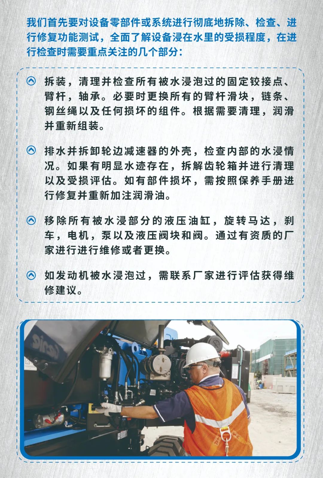 7月20日,河南省遭遇极端强降雨;上周末来势汹汹的台风“烟花”又开始席卷了江浙地区。在这样极端的天气环境下,如果高空车设备因为浸水遇到了故障,我们需要怎么做?牢记下面的维修指南,帮助您尽快修复设备,赶赴工地!