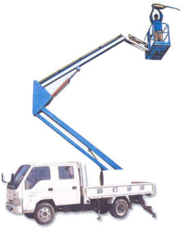 折臂式升降平台,移动方便,折臂结构紧凑,采用新型优质型钢,强度高,重量轻,直接接入交流电或采用本身直流电源启动,架设速度快,工作台即可升高,又可水平延伸还可旋转易于跨越障碍物到达工作位置,是理想的登高作业设备。
