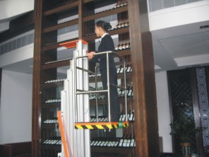 双桅柱式升降平台采用高强度优质铝合金材料,具有造型美观、体积小、重量轻、升降平衡、安全可靠等优点,产品广泛用于工厂、宾馆、餐厅、车站、机场影剧院、展览馆等场所,是保养机具、油漆装修、调换灯具、电器、清洁保养等用途的最佳安全伴侣。