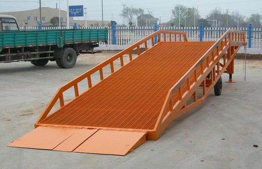 移动式液压登车桥,是一种装卸货物的辅助设备,它通过调节自身的高度来实现与卸货车之间的距离,是一中使用很方便的卸货平台。