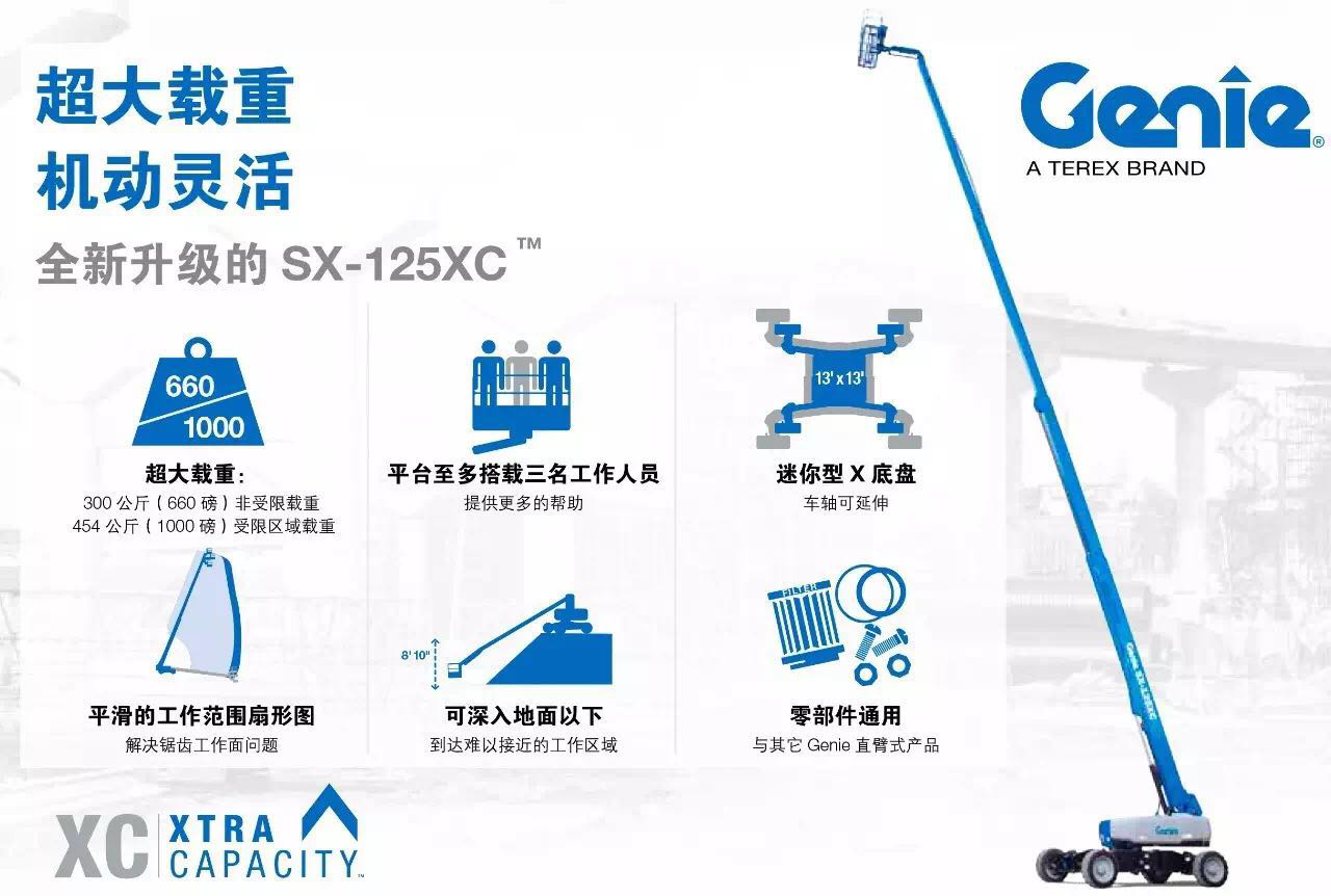 全新开发的Genie®SX-125 Xtra Capacity™ (XC) 直臂式高空作业平台近期在特雷克斯高空作业平台事业部常州工厂实现批量生产,现已全面向全球市场供货。