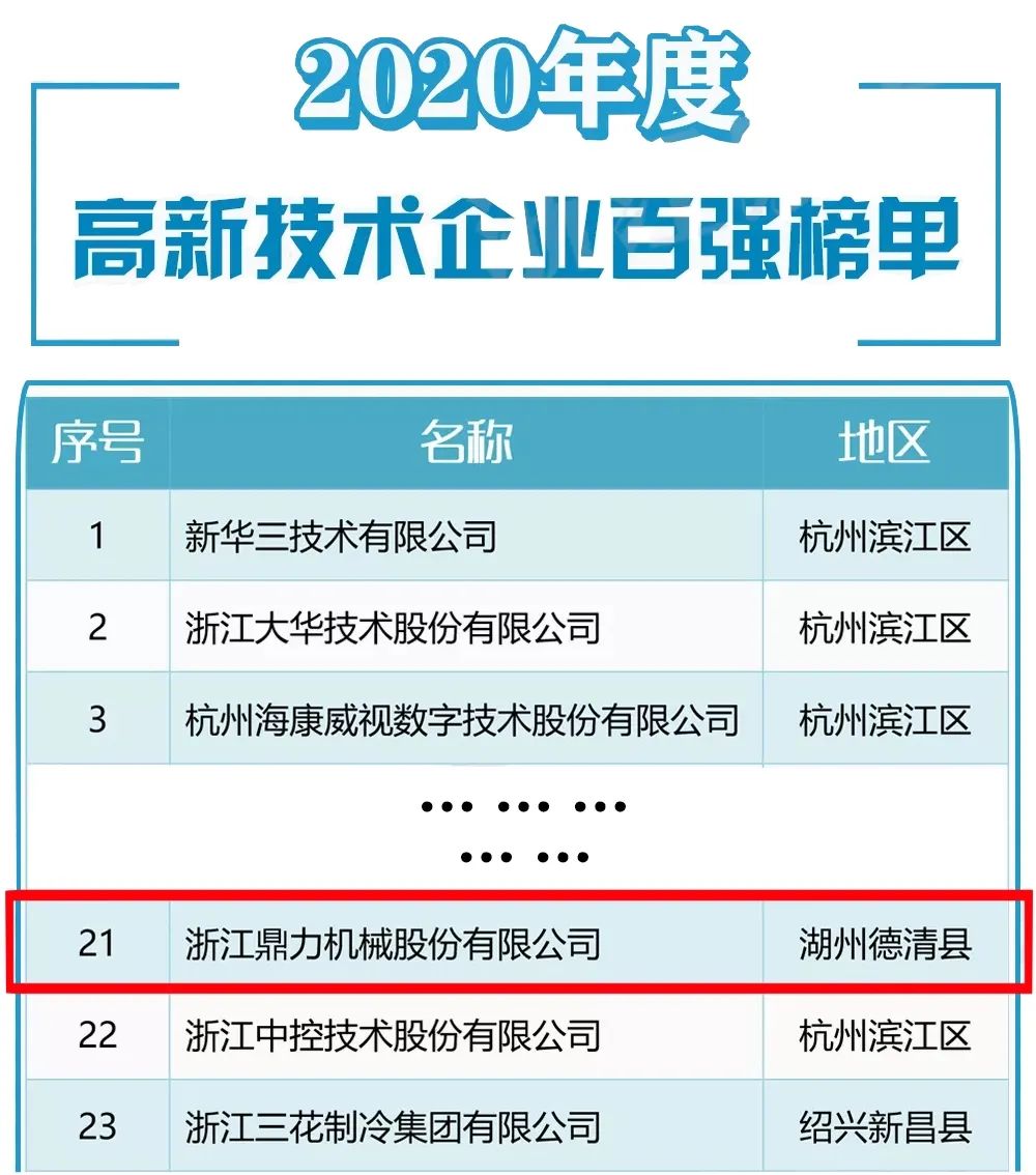 会议公布了“浙江高新技术企业创新能力百强”和“行业十强榜单”,鼎力再次上榜,位列第21位,较去年跃升20位次!