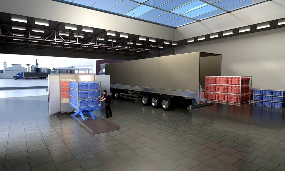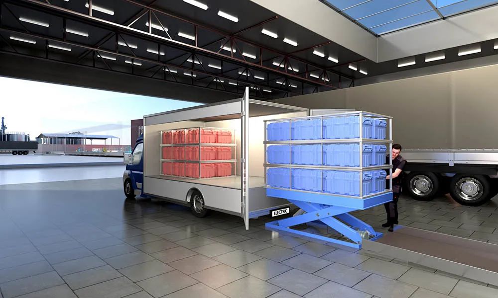 Marco为最后一公里的配送提供了安全、高效的解决方案,分组交付的货物从卡车上卸下时,需要立即转移到电动汽车上,Marco装载升降平台在大卡车和电动汽车之间起到了卸货桥梁的作用,升降台升起时,台面和大卡车车厢齐平,货物轻松运至台上,然后降至低位,再运送到电动汽车车厢。