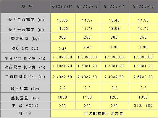 采用四组高强度铝合金桅柱支撑工作平台并同时升降,具有超强的整机稳定性,适合多人作业。护栏可收折,不占空间。设有手动复位装置。无电源时可在地面控制平台降落复位。带锁开关可防止非工作人员使用。在工作平台上可选购安装为电动工具提供的AC220电源。