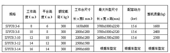 本产品系四轮移动与二轮牵引于一体,采用汽车、三轮车或电瓶车底盘作平台底架,利用本身发动机或直流电动机作动力,既可行驶又可驱动平台升降。广泛用于城建、油田、交通、市政、厂区等行业的高空作业。
