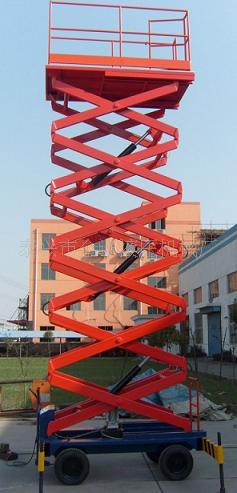 结构 升降机的机械结构一般由底座、臂架和工作台三部分组成。底座采用相应强度钢板焊接而成;臂架为剪撑铰链式垂直升降,采用高强度无缝矩形管制作,强度高、外形美观;工作台能几人同时操作,并设有安全护栏和低压操纵屏,操作安全可靠。 |
